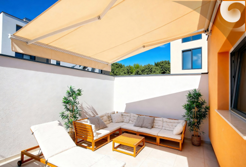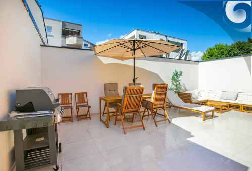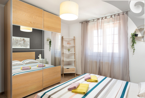 Diese Erdgeschosswohnung bietet Platz für 5 Personen. Sie verfügt über zwei Schlafzimmer, ein Badezimmer, ein Wohnzimmer mit einer zusätzlichen Schlafmöglichkeit, eine Küche und eine private Terrasse mit Grill. Die Küche ist mit Elektroherd, Backofen, Mikrowelle, Geschirrspüler, Kühlschrank und Kaffeemaschine ausgestattet. Alle Schlafzimmer und das Wohnzimmer sind klimatisiert. Waschmaschine, Föhn, Bettwäsche und Handtücher stehen Ihnen ebenfalls zur Verfügung.