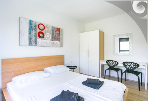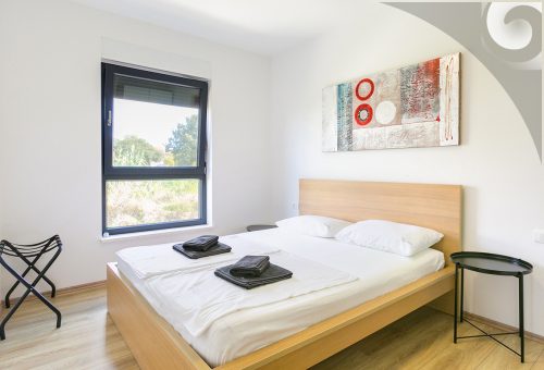 Dieses neu und modern eingerichtete Apartment befindet sich in einem neu gebauten Apartment-Komplex sehr nah am Meer. Das Zentrum ist 500m entfernt. Den Sandstrand erreicht man in nur 2-3 Autominuten. Das Apartment ist im 1. Stock und bietet Unterkunft für 6 Personen. Mit seinen 100 m² bietet es: drei Schlafzimmer, klimatisierters Wohnzimmer mit Küche, Badezimmer, Gästetoilette und Balkon mit Meerblick. Die Küche ist ausgestattet und verfügt über ein Elektroherd, Ofen, Kühlschrank mit Gefrierfach, Geschirr und Besteck. Die Schlafzimmer sind nicht klimatisiert. Die Klimaanlage befindet sich im Wohnzimmer. Den Gästen stehen auch eine Waschmaschine, Geschirrspüler, WLAN und ein Parkplatz zur Verfügung. Außerdem gibt es in dem Komplex einen Gemeinschaftspool zum Abkühlen während der heißen Sommertage. Haustiere sind nicht erlaubt.