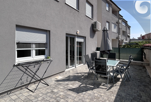 Apartment is situated on the ground floor and offers accommodation from 4 to 6 people. The apartment offers: an air conditioned living room with an exit to the terrace, kitchen, two bedrooms with double beds and a bathroom with washing machine. The kitchen is fully equipped and has a fridge with freezer, electric stove, oven, microwave, dishwasher, filter coffee machine, dishes and cutlery. You also have SAT/TV, bed sheets, towels and parking. Pets are not allowed.