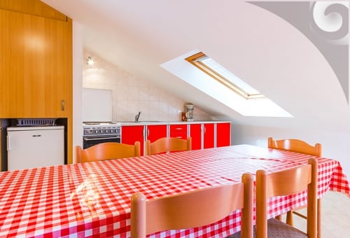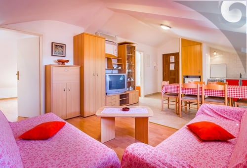 L'appartamento si trova al terzo piano della casa e può accomodàre 5-7 persone. Ci sono due camere da letto con tre letti in totale, soggiorno con un divano letto, cucina e bagno. La cucina è fornita con fornello elettrico, forno e frigorifero. L'appartamento non ha un balcone. Gli ospiti hanno anche aria condizionata, TV/SAT e WiFi. Animali domestici solo a richiesta.