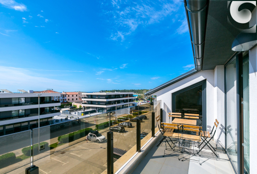L'appartamento si trova al terzo piano e può ospitare massimo 6 persone. Con la quadratura di 80 m², l'appartamento offre: soggiorno climatizzato con un divano letto, cucina, due camere da letto, due bagni, un WC separato e balcone con vista mare parziale. La cucina è fornita con frigorifero, fornello elettrico, forno, lavastoviglie ed utensili da cucina. Le camere da letto non sono climatizzate. Gli ospiti hanno anche Wi-Fi, lenzuola ed asciugamani. Animali domestici non sono ammessi. Nota: gli ospiti hanno a disposizione un solo posto auto, in un garage con portone largo 230 cm e alto 230cm.