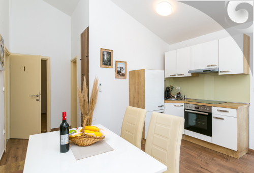 L'appartamento è situato al primo piano e può ospitare 2-3 persone. Con la sua quadratura di 40 m² offre una camera da letto mattrimoniale, soggiorno climatizzato con la possibilità di dormire, cucina, bagno e balcone. La cucina è fornita con: frigorifero con freezer, fornello elettrico, forno, bollitore d'acqua ed utensili da cucina. Gli ospiti hanno anche WiFi, lenzuola ed asciugamani.