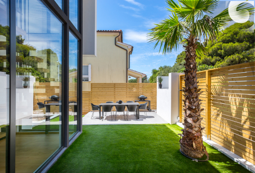 Il cortile si estende per 500 m² con mobili da giardino, sedie a sdraio, parcheggio e piscina a sfioro. L'affascinante e allegra villa offre il massimo divertimento per tutte le età, per tutta la famiglia e gli amici.